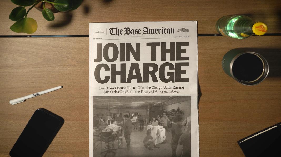 The timing was right. Base had just taken over the lease on the Austin American-Statesman printing press building in downtown Austin. A newspaper felt like the right homage to that history and Base’s ambition to be a foundational and trusted infrastructure. It was the perfect medium for both a bold headline: “Join the Charge” and in-depth perspectives from the team and backers.